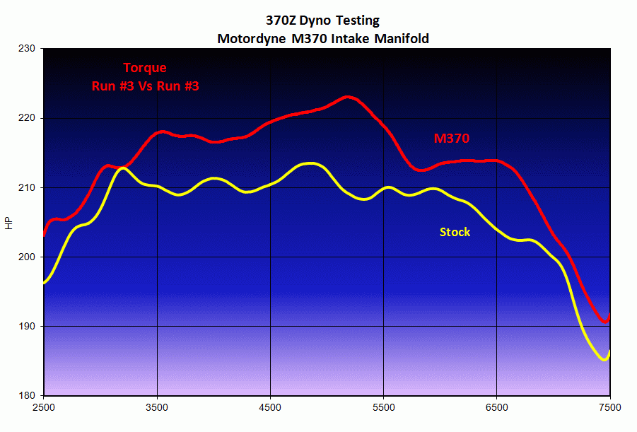 A VQ37VHR bolt on intake manifold with optimized length intake runners yielding  10-14 HP more upper midrange power and torque.